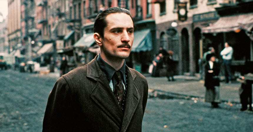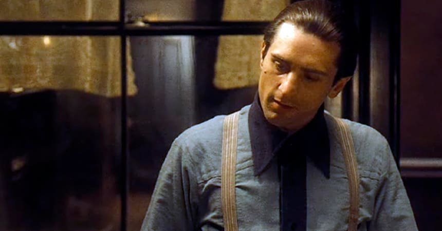 Во второй части у нас будут развиваться параллельно две сюжетных линии, одна про день сегодняшний где главным персонажем является уже Дон Майкл Корлеоне. Вторая же сюжетная линия поведает нам о прошлых похождениях молодого и подающего надежды и пока ещё не дона Вито Корлеоне, который в этот момент прибывает в италии в очень неспокойное время.