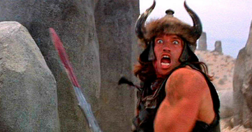 Художественный фильм Конан-варвар с Арнольдом Шварценеггером в главной роли, который мастерски разносит своих врагов в щепки. Персонаж Конана создали ещё в далёких 1930-х годах в виде комиксов и придумал его Роберт И. Говард. Позже картину решили экранизировать и Арнольд не без большого труда получил эту роль, которая стала очень важной в его карьере актёра.