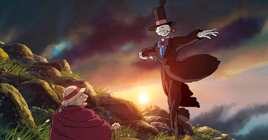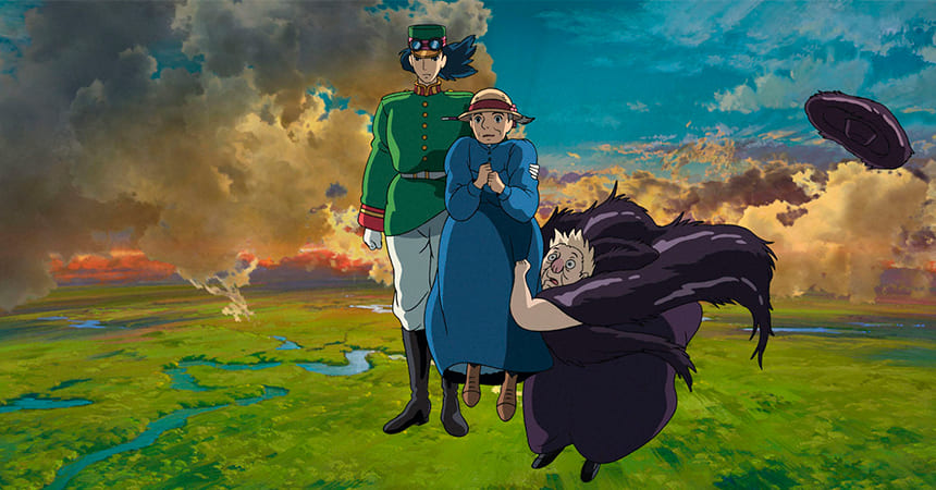 Сценарист и режиссёр аниме Хаяо Миядзаки, великолепное приключение в фэнтезийном мире, где молодая Софи оказывается заколдованной злой ведьмой, вледствии чего ей приходится искать способ снять проклятие в теле старухи.