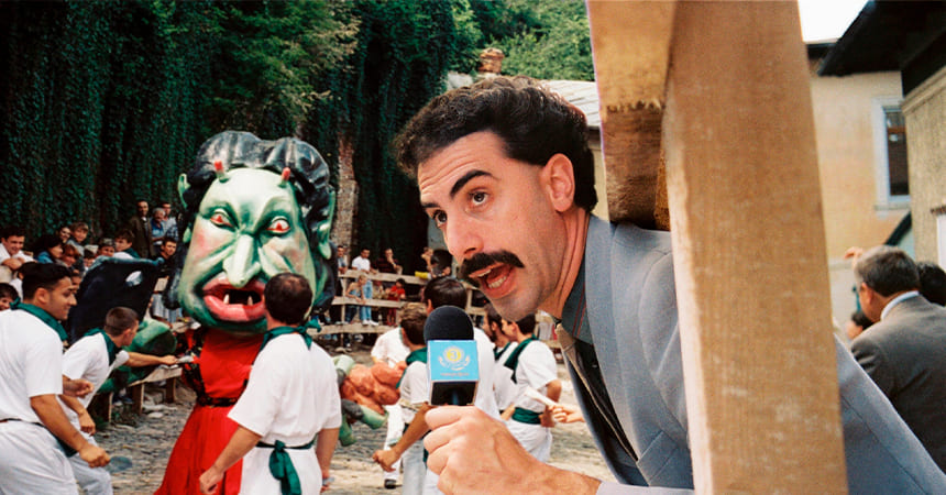 Добротная комедия Бо́рат, в главной роли Саша Барон Коэн, который играет в роли казахского журналиста, который едет в США по распоряжению «Министерства информации Казахстана» в компании со своим продюсером Азаматом Багатовым. Цель поездки снять документальный жизнь про США, который будет освещать культурные особенности американского общества.