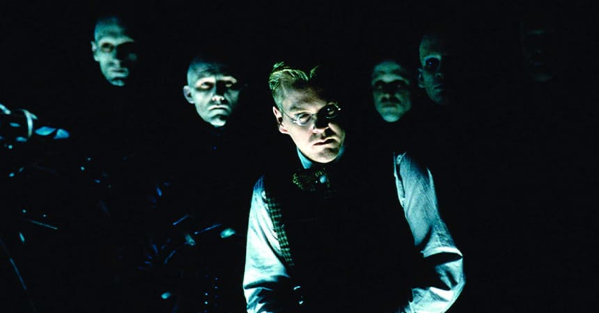 Отличная фантастика от Алекса Пройаса, главную роль сыграл Руфус Сьюэлл. Сюжет повествует нам о человеке по имени Джон Мёрдок, который внезапно приходит в себя в незнакомом месте. Он с трудом силится понять, что произошло и вспомнить кто он, но не может, знает только, что он находится в номере отеля. Внезапно раздаётся звонок телефона и таинственный человек на проводе сообщает, что ему нужно бежать как можно скорее. Рядом он находит тело бездыханной женщины всё исполосованное.
